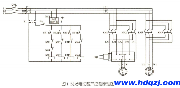 (2)控制電動葫蘆上升的接觸器KM1故障吸死。其控制按鈕SB1及啟動開關SA均無法切斷電動葫蘆上升的電源,導致事故的發生。